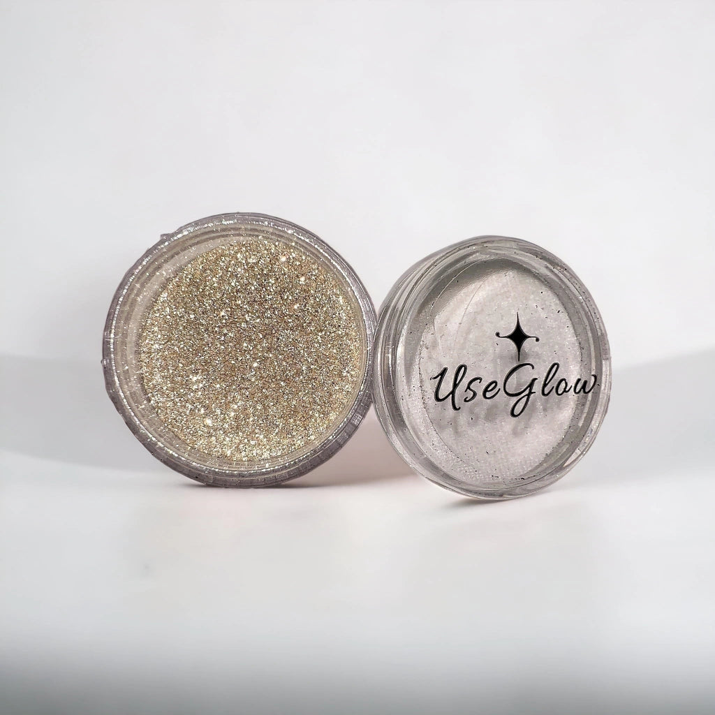 Os glitters Use Glow são criados a partir de combinações exclusivas de partículas de brilhos, em diferentes tamanhos, cores e intensidades. Esses produtos são desenvolvidos para trazer inovação, altíssima qualidade e brilho intenso à sua maquiagem. Por mais que eles tenham se popularizado entre o universo da maquiagem profissional e automaquiagem, eles também podem ser utilizados para a decoração de unhas.