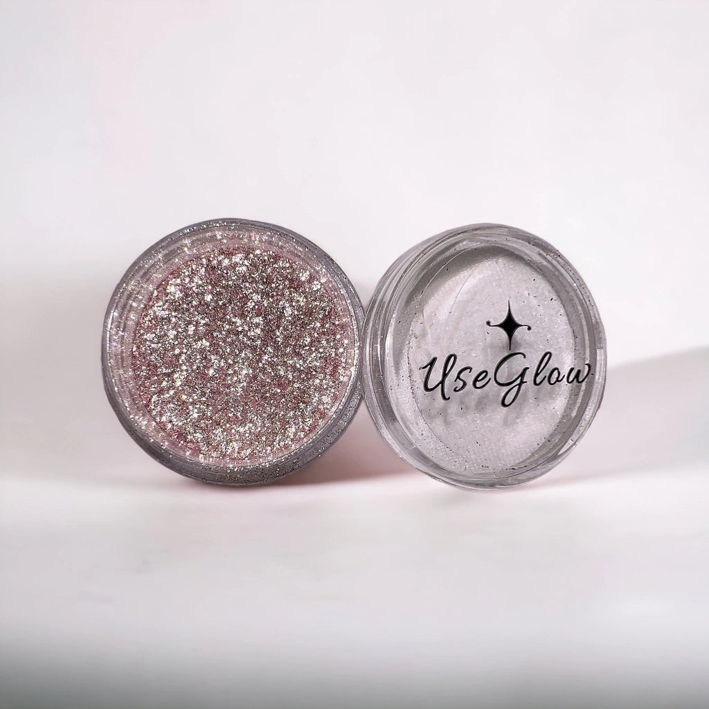 Os glitters Use Glow são criados a partir de combinações exclusivas de partículas de brilhos, em diferentes tamanhos, cores e intensidades. Esses produtos são desenvolvidos para trazer inovação, altíssima qualidade e brilho intenso à sua maquiagem. Por mais que eles tenham se popularizado entre o universo da maquiagem profissional e automaquiagem, eles também podem ser utilizados para a decoração de unhas.