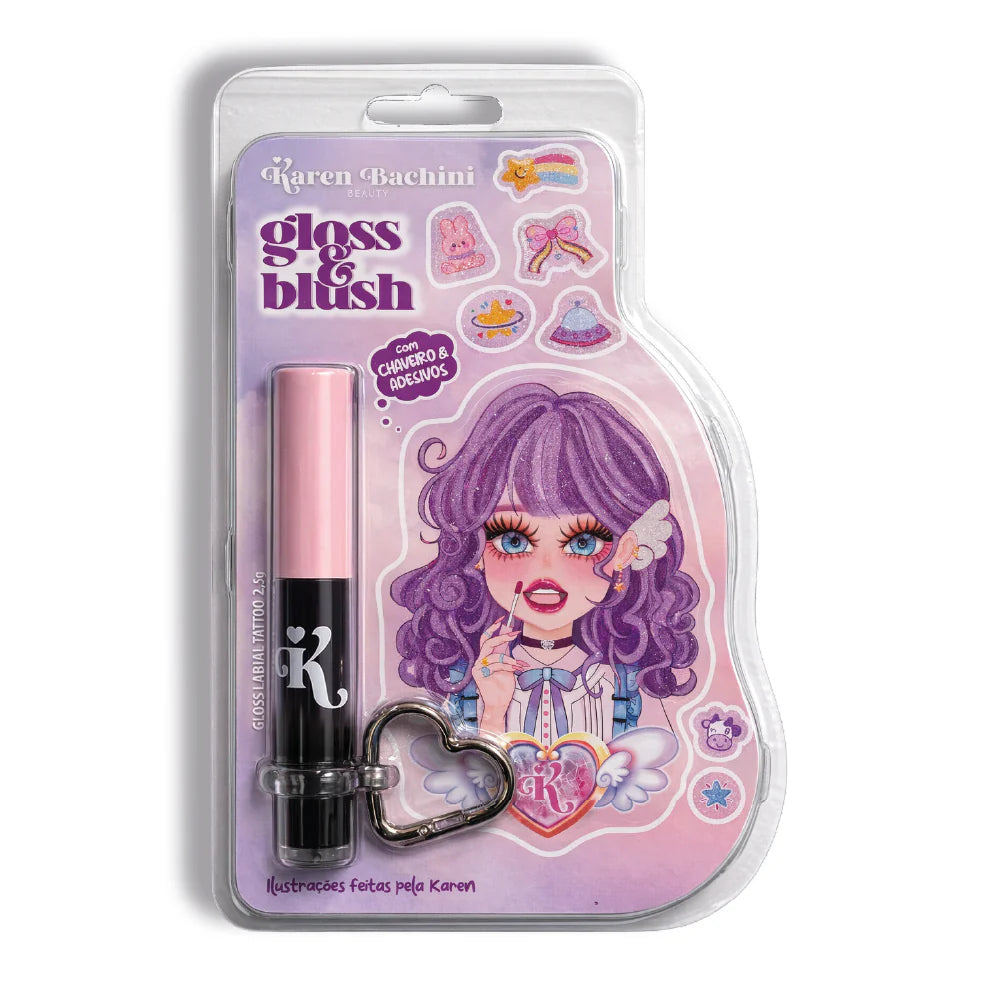 O Tattoo Blush & Gloss – Edição Especial foi criada para quem ama beleza com personalidade. Com anel de silicone e mosquetão em formato de coração , ele vira chaveiro para levar na bolsa, mochila ou onde quiser. Acompanha cartela de adesivos colecionáveis e um adesivo gigante para você personalizar do seu jeito.