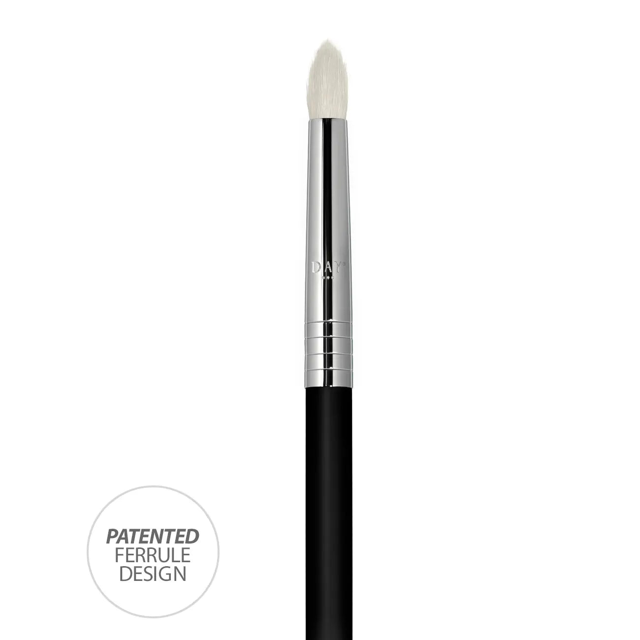 Aplicação precisa no côncavo, rente aos cílios e no canto externo do olho. Pelos naturais de cabra DAYTECH Soft Hair™, cabo de madeira com ponteira em cobre prata.