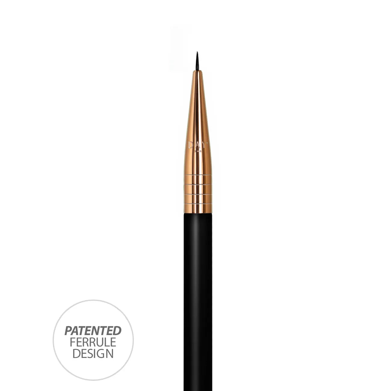Aplicação de delineado preciso. Cerdas sintéticas micronizadas DAYTECH Soft Fibers, cabo de madeira com ponteira em cobre gold rose.